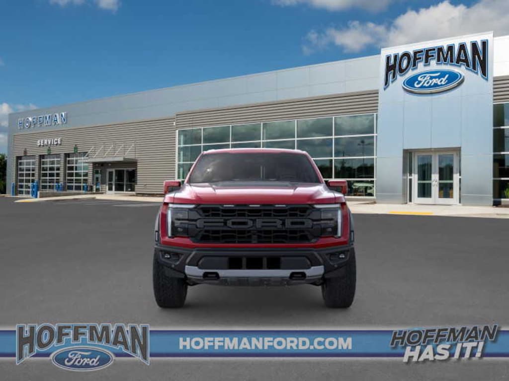 TWIN PANEL MOONROOF, TOUGH BED SPRAY-IN BEDLINER, TRANSMISSION: ELECTRONIC 10-SPEED AUTOMATIC SelectShift w/paddle shifters and terrain management modes: normal, sport, tow-haul, slippery, rock crawl, off-road and baja (STD). Ford Raptor with Rapid Red Metallic Tinted Clearcoat exterior and Black interior features a V6 Cylinder Engine with 450 HP at 5850 RPM*.
